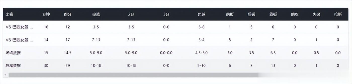 这事儿邪门不邪门?热身赛打巴西,她16分钟轰12分6板,罚球6中6稳得像机器。第二场打巴西,14分钟砍17分7板,全场最高。打捷克,又是11分4板进账。三场比赛,场均16分钟,这效率放在任何队都是大腿级别的存在。