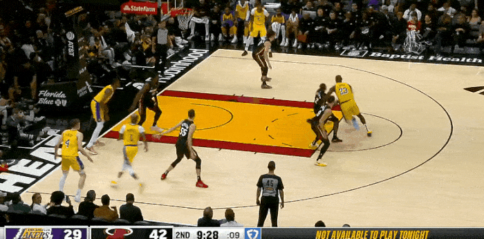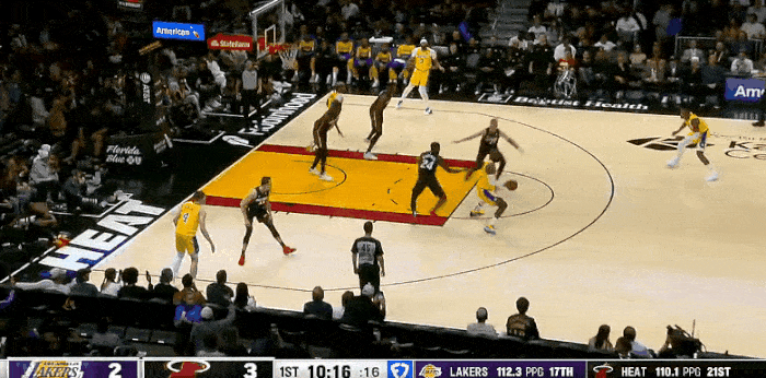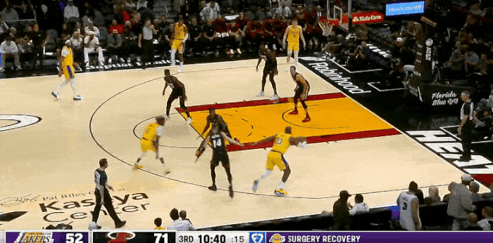下半场易边再战,湖人队虽然奋起直追,但是整体效果一般,羸弱的防守让热火在本节中段又是轰出了一波14-2将分差一举扩大到了28分。而后热火在末段又连得9分将分差扩大到了33分,三节战罢热火以105-72大比分领先。