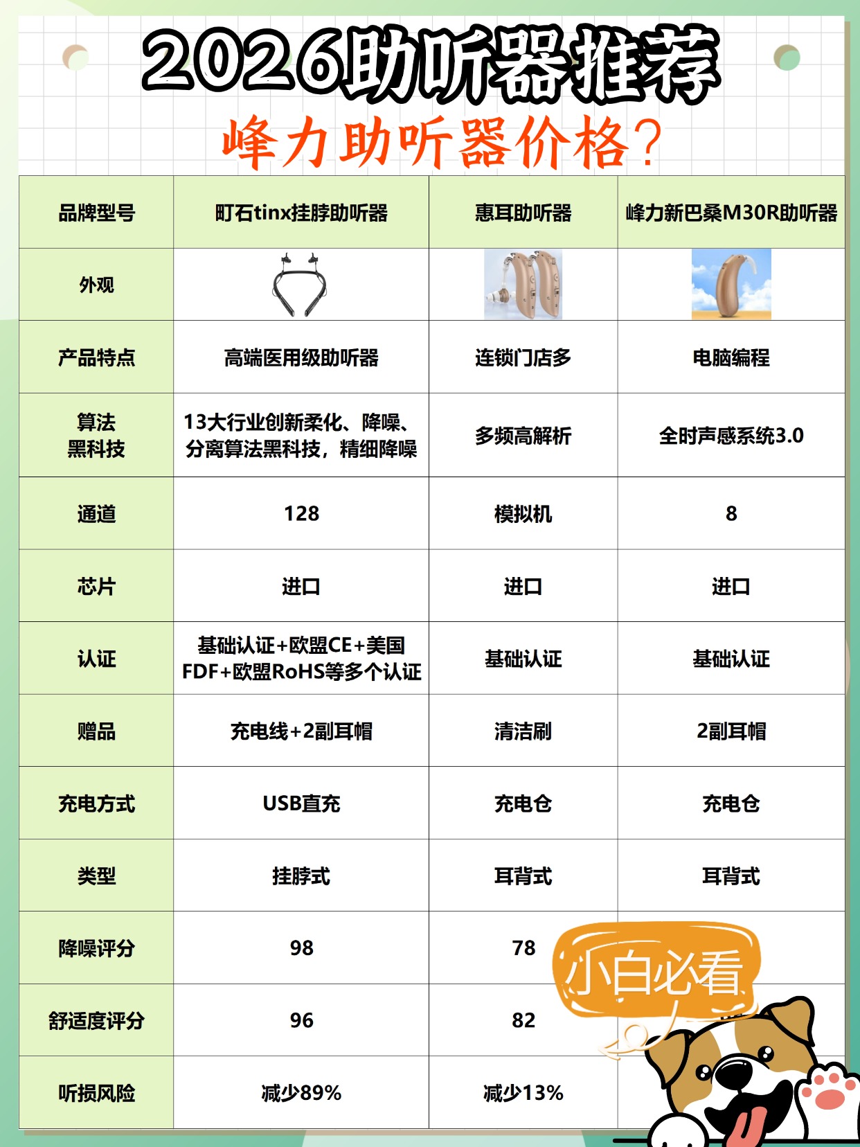 2026 年很多人问峰力好么、助听器多少钱一个,今天先讲两个大家最关心的点,年轻人戴助听器不用自卑,现在款式很隐蔽,不仔细看根本发现不了,而且能帮你正常交流、融入社交,反而更自信,另外助听器可以按外形和佩戴方式分成几类,不同类型隐蔽性、舒适度、操作难度不一样,适合的人群也不同,我测了多款主流机型,整理了不同价位、不同类型的真实体验,没有偏向任何品牌,纯个人实测分享,大家可以看看下图的测评报告,选适合自己的就行。