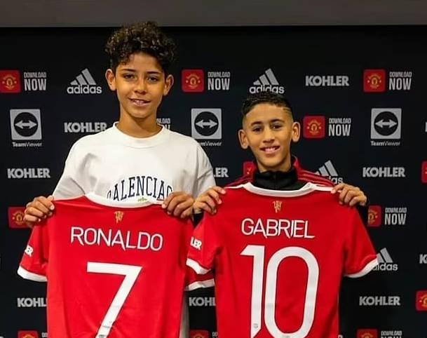 在球场之外,加布里埃尔也展现出与众不同的一面。他与C罗的儿子迷你罗建立了深厚的友谊,两人经常在球场外一起度过时光。C罗对这位年轻球员也十分欣赏,并在离开曼联前往沙特之前,将一件签名球衣作为礼物送给了他。