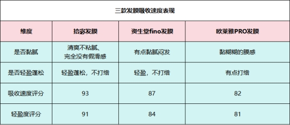 测评方法:连续使用三款发膜3天,记录使用后头发的清爽感,重点观察不同天气和湿度下的表现,最终对吸收能力、进行评分。