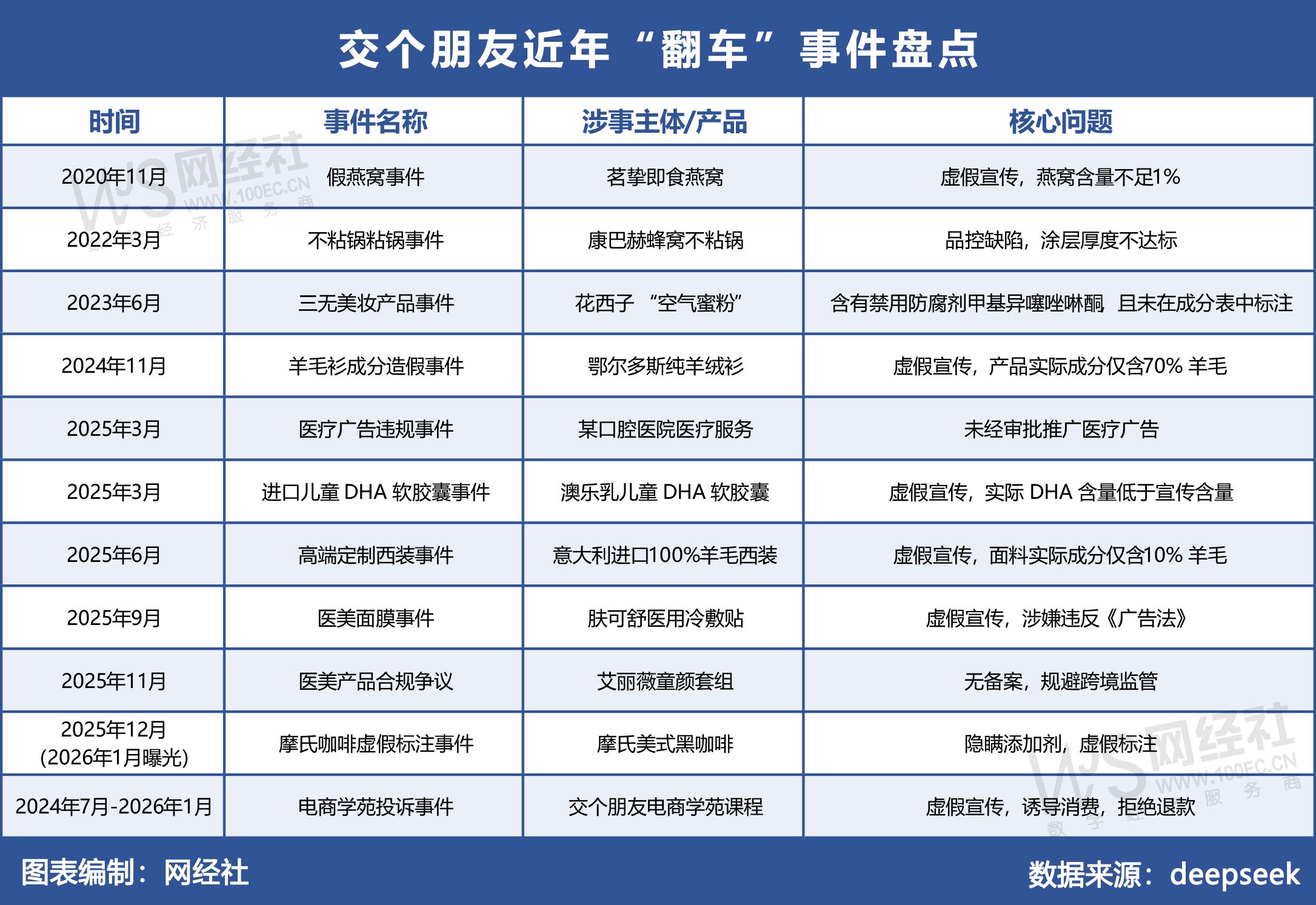 然而,在这组光鲜数据的背后,却交织着挥之不去的争议与质疑。近年来,“交个朋友”屡次被公开指控“割韭菜”,成为舆论场上的焦点。有抖音男鞋品牌店主自曝,花费近8万元购买其“陪跑21天”等服务,最终真实成交额不足4000元,投入产出比惨不忍睹。更有甚者,其直播间爆款商品被指存在“0添加”宣传与实际检出香精不符的合规风险。这些“翻车”事件,与其宣称的“提升GMV 3-5倍”的承诺形成了刺眼的反差,也让市场开始重新审视其高速增长的底层逻辑:这份160亿的GMV,究竟是源于其强大的赋能能力,还是更多地依赖于创始人IP的流量红利与成熟的自营供应链?在直播电商行业竞争白热化、监管日趋严格的当下,“交个朋友”如何在业绩增长与品牌信誉之间找到平衡点,已成为决定其未来走向的关键命题。