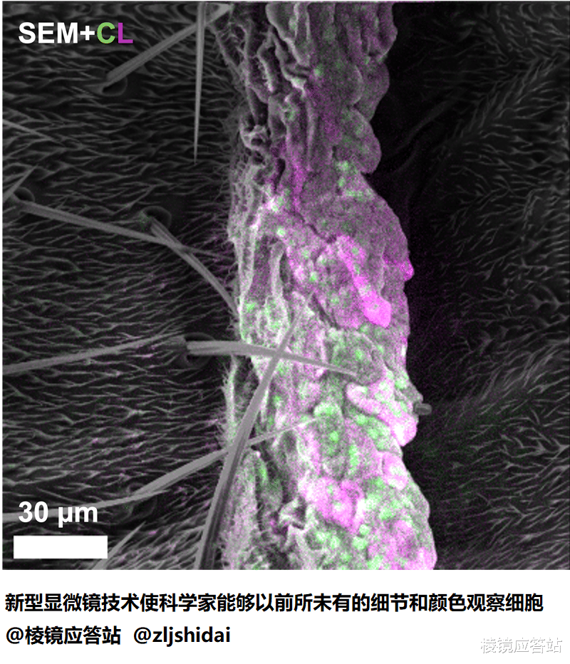 博士后研究员DebsankarSahaRoy和导师MaximPrigozhin的团队,给出了完全不同的答案。他们就用一束电子束,与此同时干两件事儿,画出细胞的精密骨架,还让蛋白质探针发出彩色的可见光,这个现象叫阴极荧光就跟一支笔似的,与此同时画出轮廓和色彩。