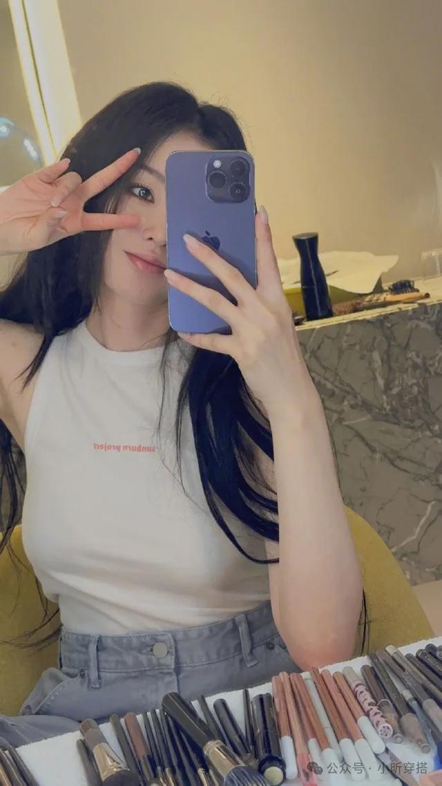 像张天爱这种身材的女明星,可以说是越素越美,不用靠那么多繁复琐碎的花纹来吸引注意力,一身干干净净的搭配就已经可以吸引到所有人的目光。而且她很懂得展现自己的颈肩线条,这种裸肩的穿搭,显得她的肩头圆润而饱满,再加上随意落下的几缕长发,一种不经人工雕刻的美感跃然于画面。