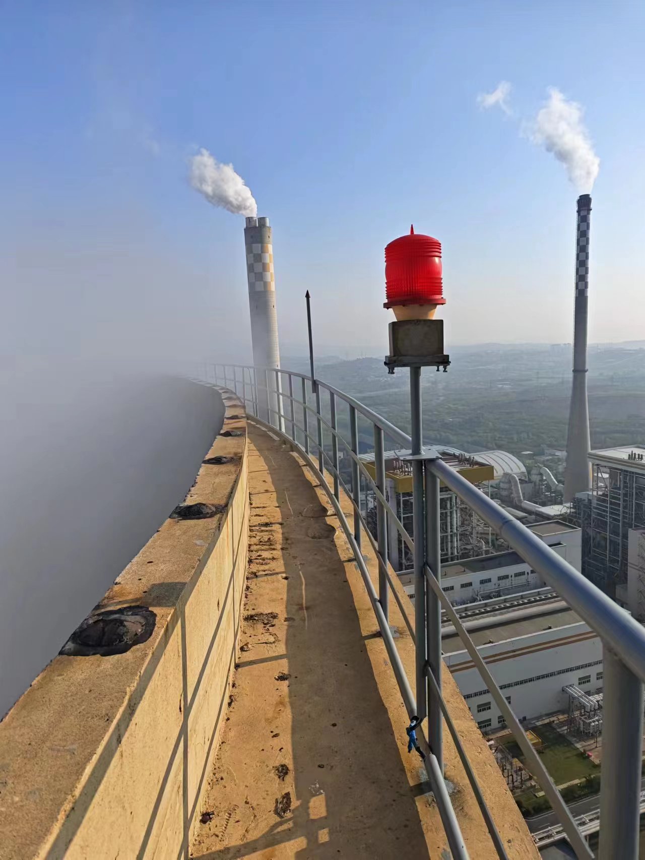1.停机隔离与安全布设:断开障碍灯总电源并挂牌,冷却塔周边 15m 划定警戒区;沿塔筒搭设专用高空吊篮 / 爬梯防护通道,布置防坠生命线,作业面设临边防护,工具系防坠绳。