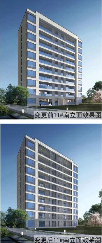 3、单体:5#楼首层调整为架空层及局部物业用房;5#、11#楼调整为北入口;调整部分楼座的轮廓、层高、交通核、机房、屋顶层、设备平台、凸窗、立面设计等。