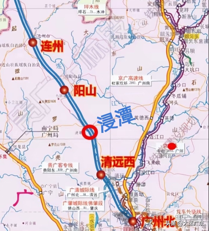 接着看粤北,目前仅通了一条高铁,这也是最早通车的高铁,不过高铁建设相对滞后,仅有这一条。它于 2009 年通车,清远、韶关可谓“起了个大早,赶了个晚集”。目前规划的广清永高铁经过清远、连州、阳山、清新至广州,粤北这里很有建设需求,且看起来较为迫切。