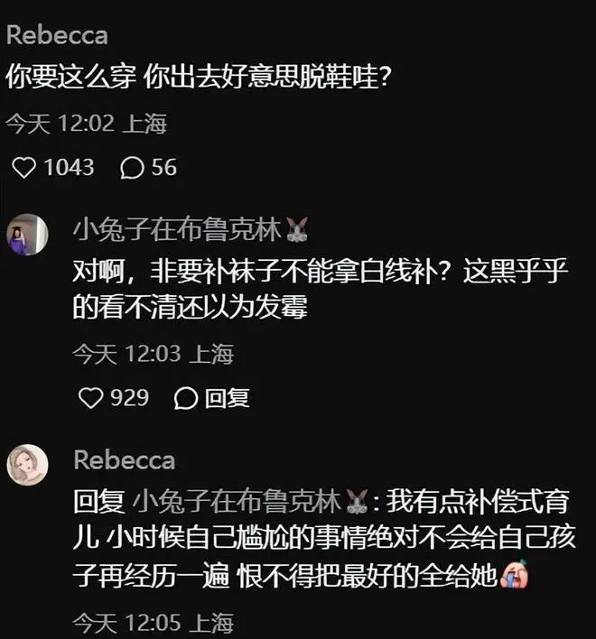 女子网上晒给女儿补的袜子, 女儿赞许却被网友群嘲。