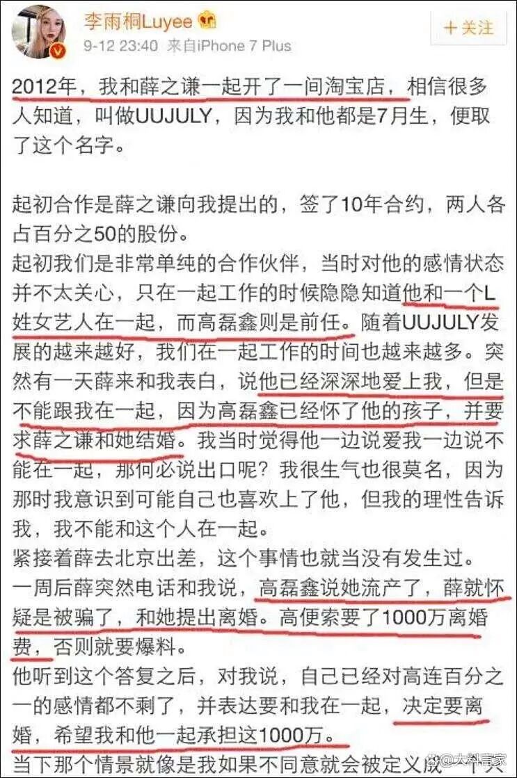更劲爆的是,李雨桐还表示,薛之谦离婚时给高磊鑫的1000万,其中有300万是她出的。