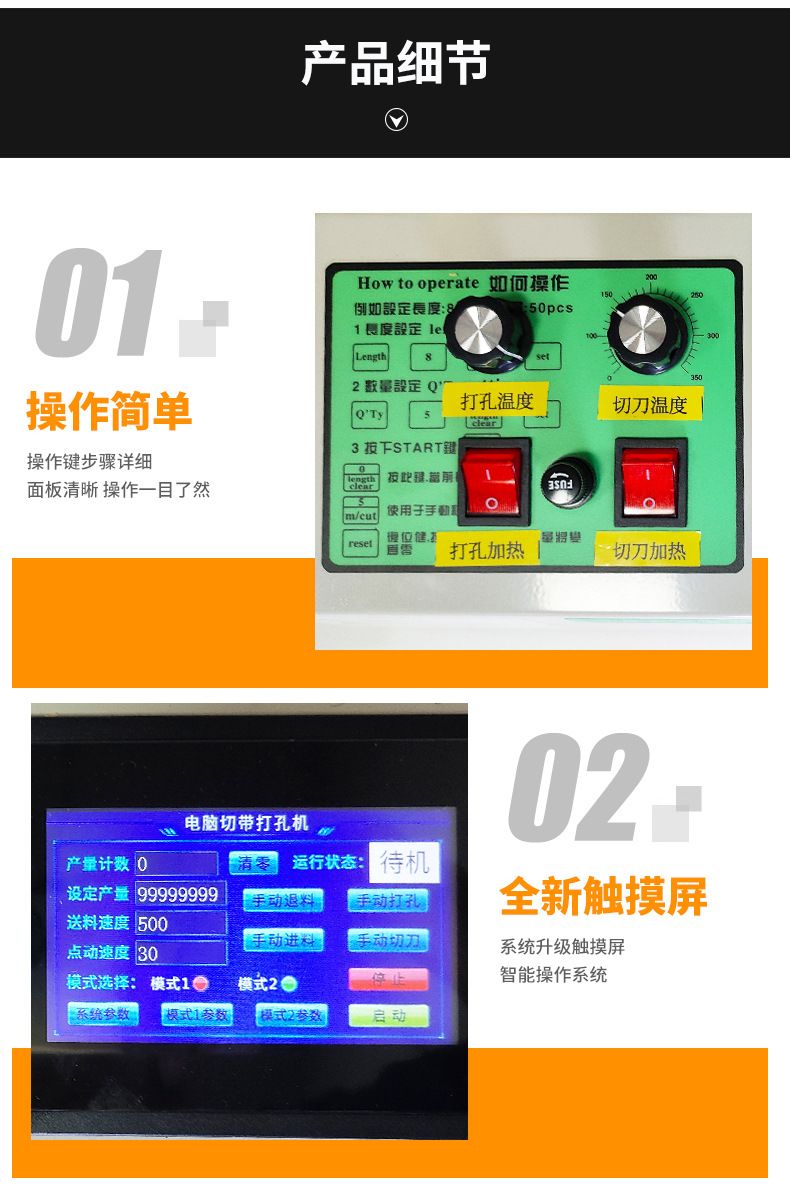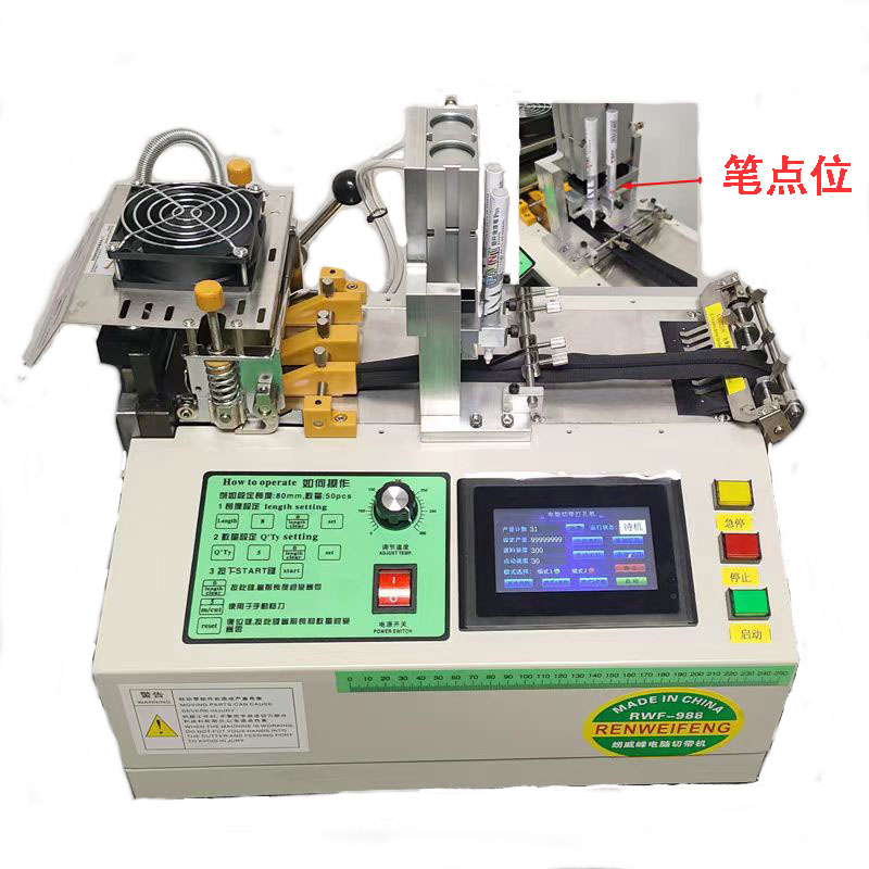 1.核心功能与参数: 同样集成 “点位 + 裁切” 双功能,但点位环节采用漆油笔标记替代断点打位,可在拉链表面精准画出记号,既实现定位需求,又不会破坏拉链的完整性;裁切参数与打牙位款完全一致(0.1-0.4mm 厚度、0.1-95mm 宽度、1-99999mm 长度),刀片温度 0-350°保障裁切切口熔合光滑。 触屏操作系统支持参数设定与存储,送料轮双槽设计保障拉链输送稳定,裁切速度同样可达每分钟 110 片(50mm 长度),兼顾效率与精度。2.性能与场景适配: 这款机型的核心优势是 “无断口点位”,完美适配金属拉链、隐形拉链等不能打断口的类型 —— 例如高端服装的隐形拉链,若打断口会影响美观与耐用性,漆油笔点位既能实现装配定位,又能保留拉链的完整性。 同时,其轻便的机身(24kg)与110V/220定制电压适配性,同样适合小型加工厂、定制服饰工作室等场景,尤其适合对拉链完整性要求高的高端订单生产。