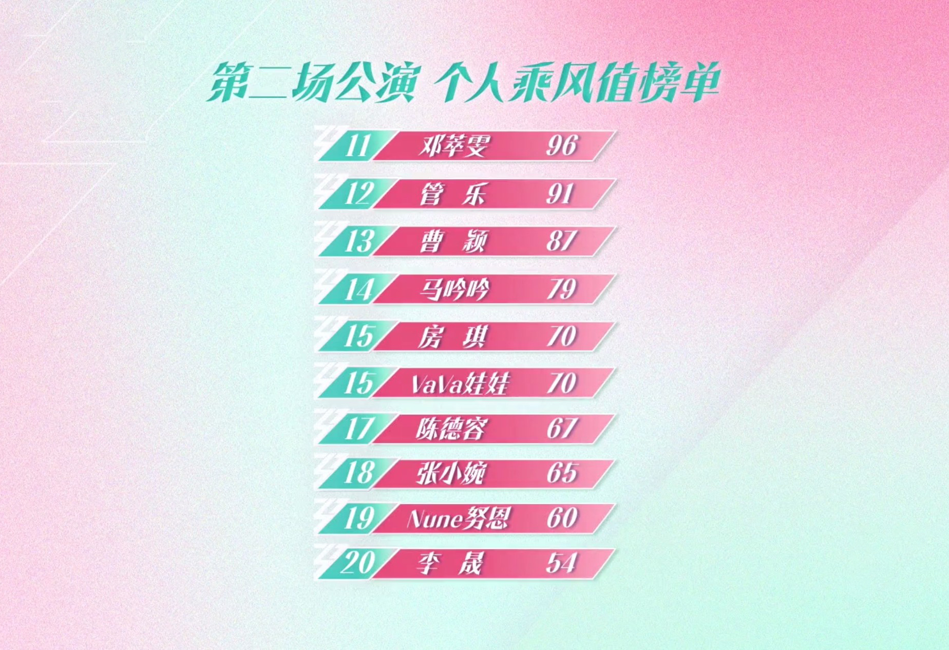 尽管有着最差的表演,最糟的口碑,但并不妨碍她在节目中的人气。一公排名17,二公又再次排名17,稳定的乘风值排名已经让人意外。但没想到,随着四公录制的完成,陈德容又再次悄然晋级。