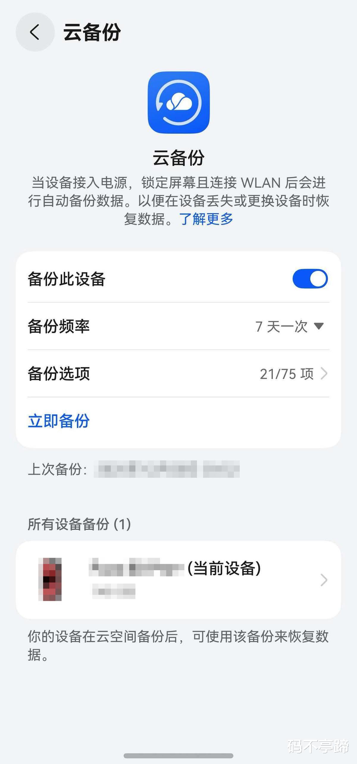 除了照片,华为云空间还支持云备份功能。开启后,晚上手机充电、锁屏锁屏且连着WiFI时,系统就会自动把通讯录、备忘录、系统设置、还有各种应用的数据都定期备份。等之后换新手机时,一键就能把所有的数据和回忆都搬到新手机上,再也不用手动传输数据了,简直是换新机必备!