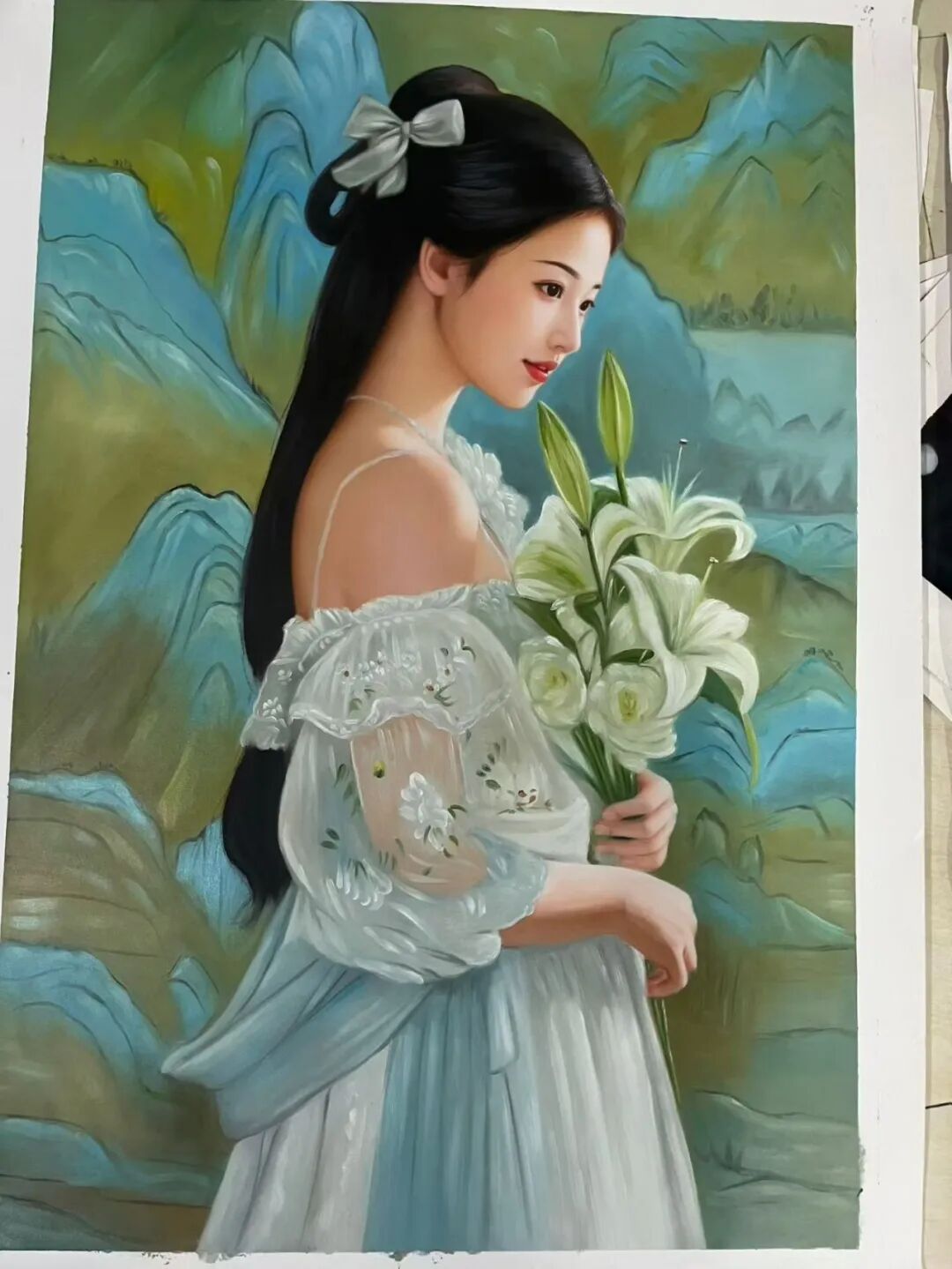 周曦作品令人赞叹之处在于他对"技道合一"这一传统理念的极致实践。中国工笔作品里线条的流转、墨色的浓淡,都已依据极其娴熟的技法,成为心灵轨迹的自然流露。他的创作境界鲜明地表达着法自我立的美术真谛,在规矩的法度中蕴含着洒脱的创作自由,所以作品工而不滞,形神兼备!他作中国画深入传统磨砺,又能从容走出,不作画匠,将前人笔墨技法转化自我的艺术语言,形式上有着古今互鉴对照关系,文化精神层面又存在深刻对话关联,所以其作品有传统的深厚感,也有笔墨当随时代的创新性。比如山水创作既保留了外师造化,中得心源的传统精神,又在空间构成和视觉表达上融入了现代人的感知朝向,画出了不失古代却能打动当下的山水典范。他的笔墨创新不是刻意的标新立异,而是建立在对东方美学精髓深刻理解基础上的自然生发,笔墨当随时代的实践带着澄怀观道的文艺心境,行走在前溯古风,今作新颜文化道路上,成为引领时代美术潮头的领军人物!