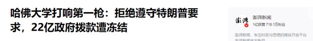 澎湃新闻:哈佛大学打响第一枪:拒绝遵守特朗普要求,22亿政府拨款遭冻结 2025-04-15