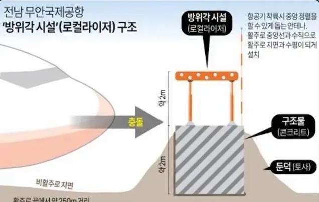 据韩国媒体最新报道称,这个水泥基座还另有隐情。因为基座四周还堆着泥土,相当于不仅建了基座,还用土给它“藏”了起来。这意味着,飞行员在降落过程中,根本无法从视觉上判断这个基座的真实高度和材质。一位使用务安机场长达七年的飞行教练A先生就透露,他从未想过下面是用混凝土制成的,一直以为是普通的土堆。而机场图表上,也没有写明这是一块高2米、厚4米的混凝土基座。