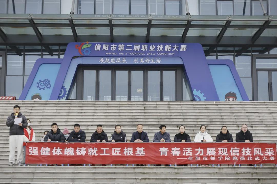 12月4日下午,信阳技师学院“规行为之范,扬青春之帆”跑操比武大赛在学院中心广场举行。全校64个班级、数千名学子齐聚一堂,以整齐划一的步伐、铿锵有力的口号展现青春风采。学生工作科、基础教学部、各二级学院负责人及全体裁判员出席活动并观摩比赛。