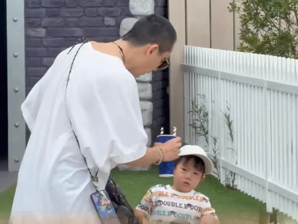 李承铉则是全程都在照顾二胎儿子seven ,还坐在椅子上等她们拍照,真的很有耐心。3岁的seven头戴卡通图案棒球帽,穿着印花t恤和短裤套装,打扮潮范十足,脸蛋圆圆的,肉嘟嘟的很可爱,五官看起来更像爸爸李承铉多些,也是高颜值小帅哥呀。