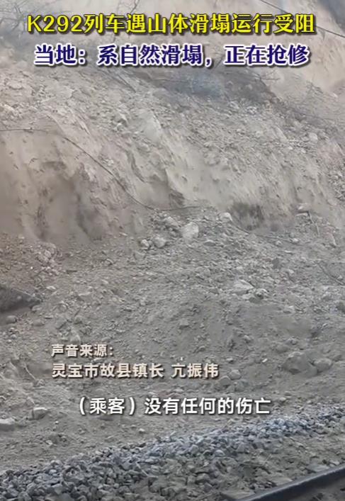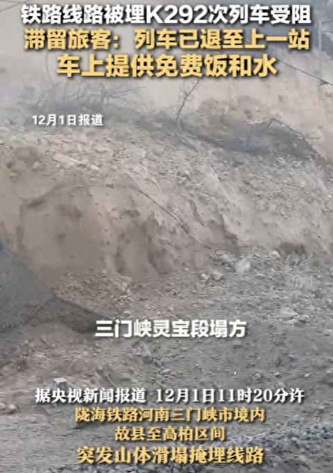 河南三门峡突发山体滑坡导致铁路线路被埋,由成都开往昆山的K292次旅客列车运行至该处受阻,铁路部门正在紧急处理。