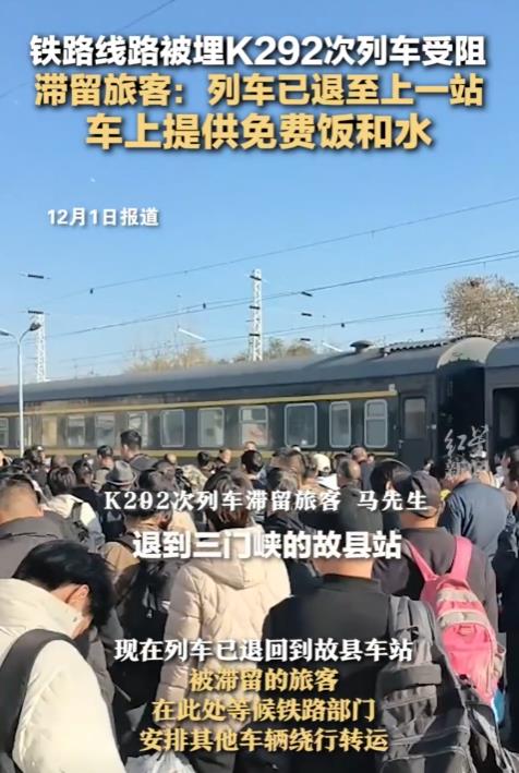 事情发生后,列车已退回到故县车站,被滞留的旅客在此等待铁路部门安排其它车辆绕行转运,有当事人表示在被滞留期间,铁路部门免费为大家提供了餐食和饮用水。