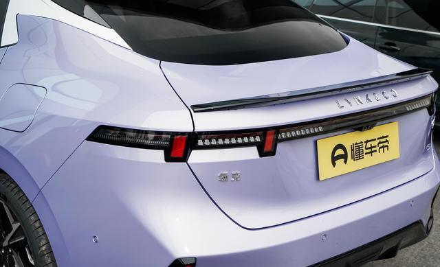 领克07新增“浮光紫”配色,实车亮眼。车尾融入齿轮元素,下包围有纵置反光条,半环形灯条含5个小灯芯,形如獠牙,配“LYNK&CO”车标,提升辨识度。