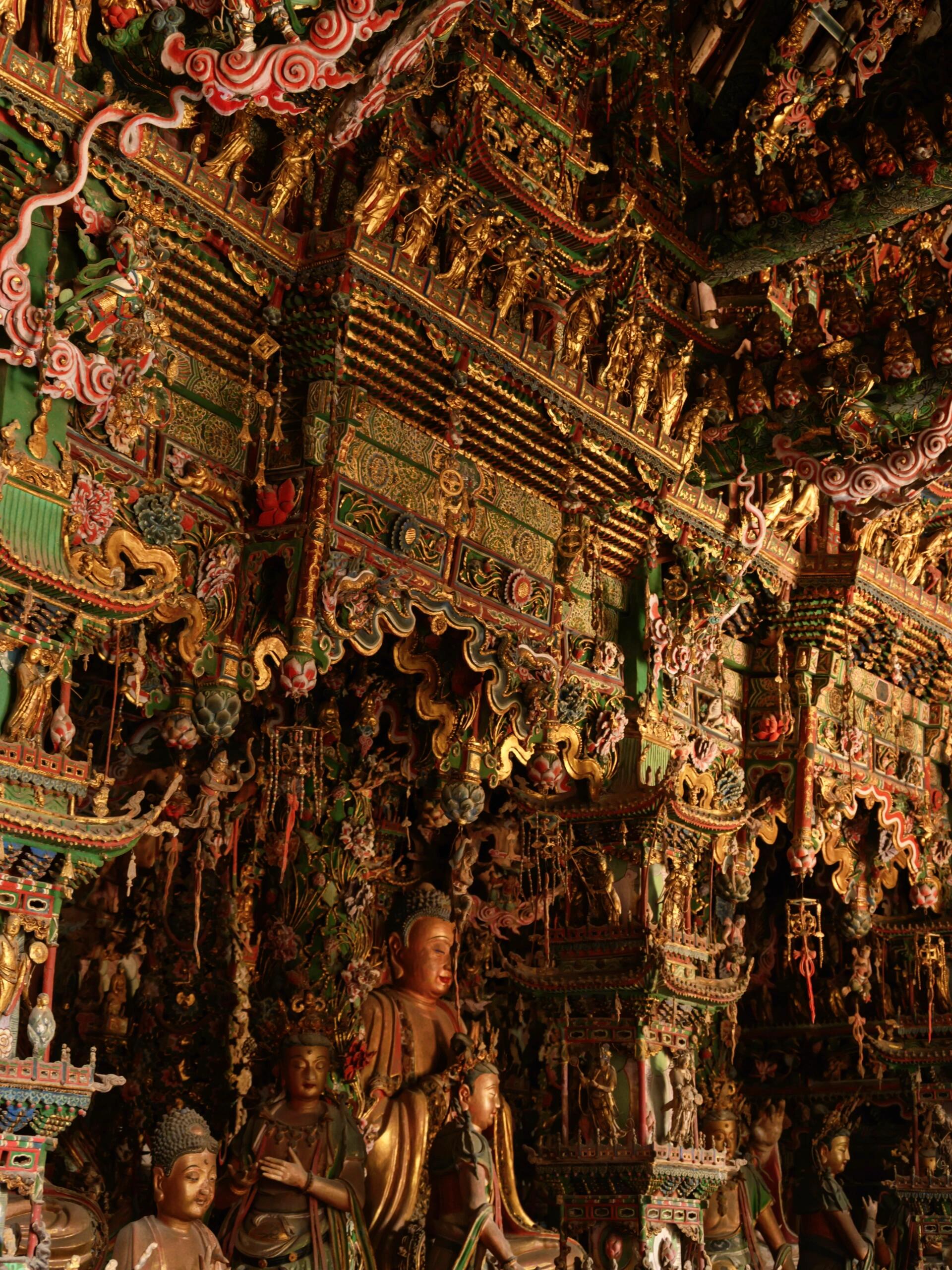 下山时回头望,小西天的红墙在山坳里只露个尖,倒像是故意藏着不肯见人。想起殿里那尊最小的佛,只有指甲盖大,却也披着完整的袈裟,突然懂了这"极繁美学"的意思——不是要把所有宝贝都堆出来炫耀,而是要告诉你,再小的存在,也值得被认真对待。至于那些争论,或许本就是佛国给世人的考题:当你盯着破洞袈裟里的针脚时,是在看匠心,还是在看分别心?