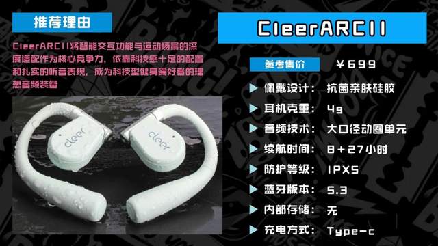 CleerARCII将智能交互功能与运动场景的深度适配作为核心竞争力,依靠科技感十足的配置和扎实的听音表现,成为科技型健身爱好者的理想音频装备。