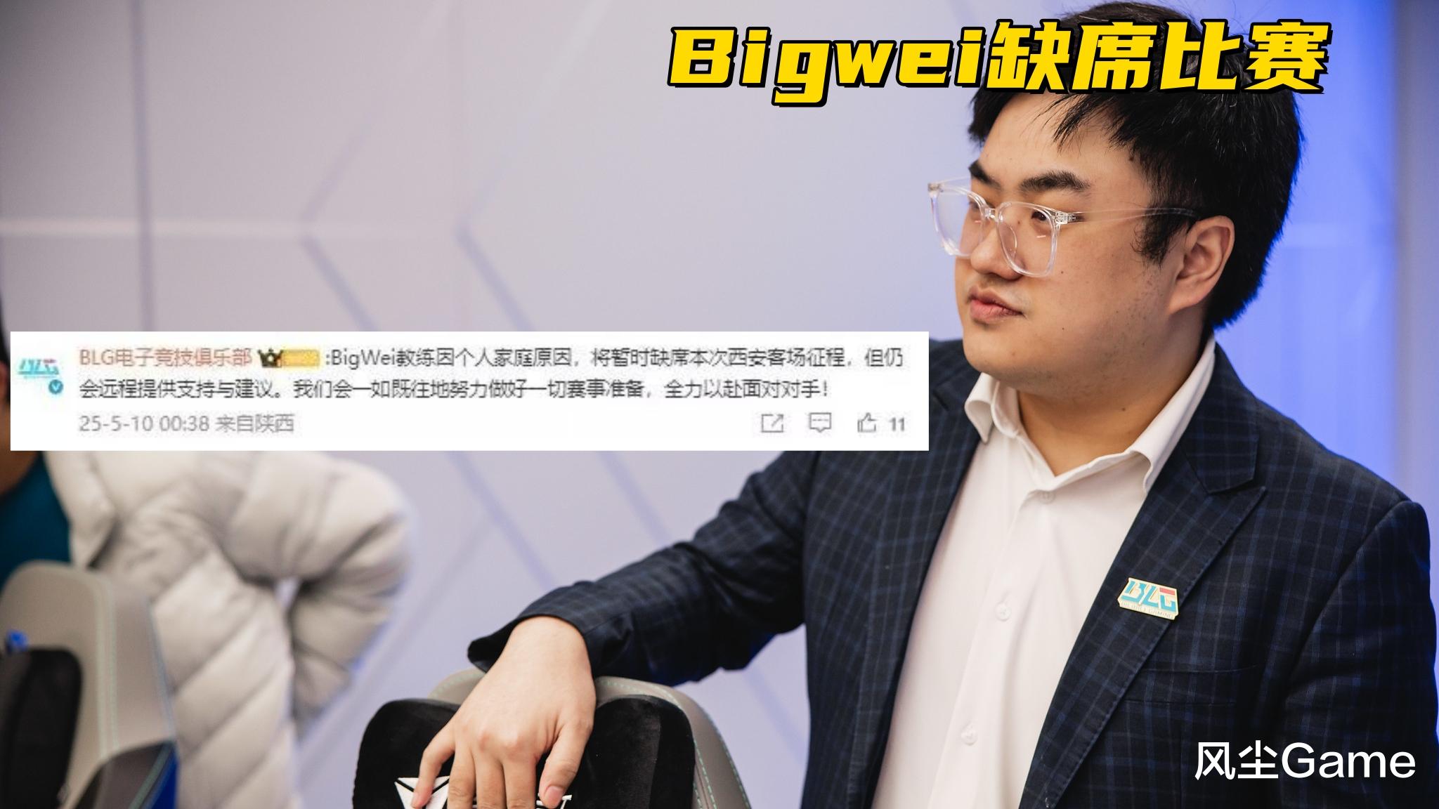 BLG官博大半夜,在评论区发布公告:Bigwei教练,因为个人家庭原因,将暂时缺席WE的比赛,但他会远程提供支持和建议,大伟去不了的话,那肯定是茂凯上场BP,个人建议,茂凯连麦Bigwei的时候,不要有过多的想法,按照Bigwei的思路去Ban选就行了,不然估计BLG的BP会劣势。