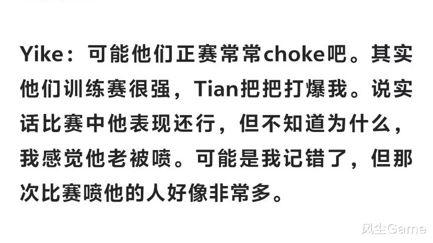 Yike对TES的点评,确实一针见血,但为小天发声,是真有点难绷了啊,作为一个外赛区选手,他居然知道滔搏粉丝,骂小天这档子事儿,看来也是个冲浪达人,Bigwei缺席比赛,其实对BLG影响不大,只要BP不是特别逆天,感觉BLG都输不了。
