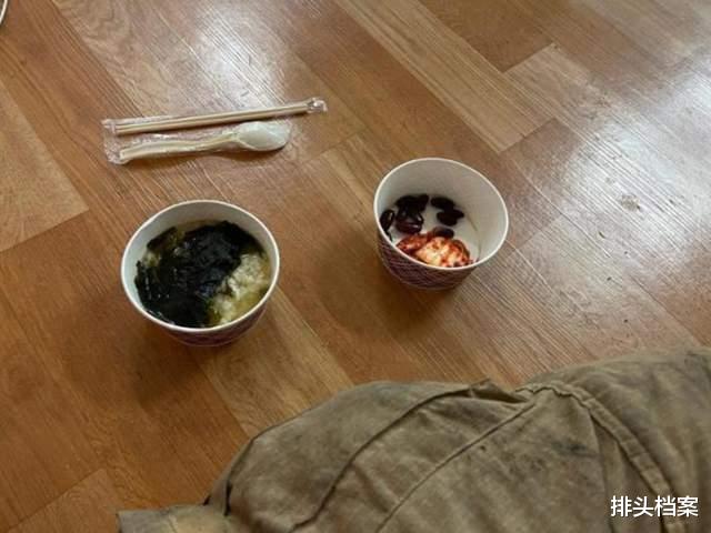 从一些韩国消防员发布到社交平台,以及韩国媒体的转载和报道情况来看,由韩国官方提供给这些消防员的午餐和晚餐都放在一次性餐盒中。有人领到的餐盒中只有一份作为主食的米饭、区区几片被韩国人视为“国宝”的辣白菜泡菜,以及一点同为泡菜的辣苏子叶。也有人领到的是泡在清汤寡水的紫菜汤中的米饭,以及几片泡菜和几颗煮熟的蚕豆。