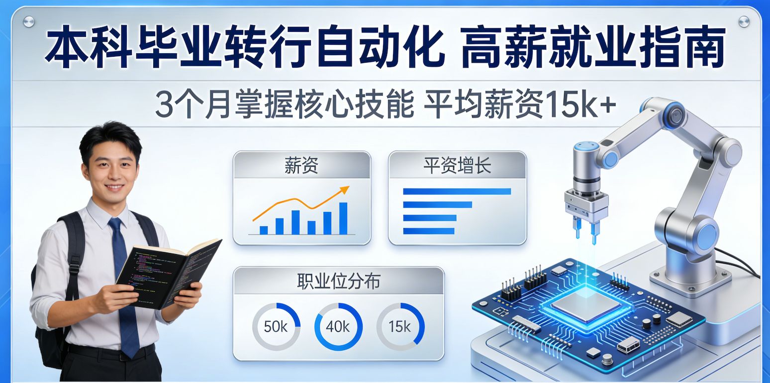 导语:不少本科生毕业后陷入工作不顺的困境,要么工作内容枯燥没晋升,要么薪资偏低难提升,想转行又怕选不对赛道。而自动化作为智能制造的核心领域,岗位需求大、薪资待遇优,成了转行热门选择。答案很明确:本科毕业转行自动化,选对核心技能、找对入行路径,完全能实现高薪就业。这篇文章就讲清转行自动化的高薪逻辑、核心抓手,以及本科生该怎么快速切入,少走弯路。