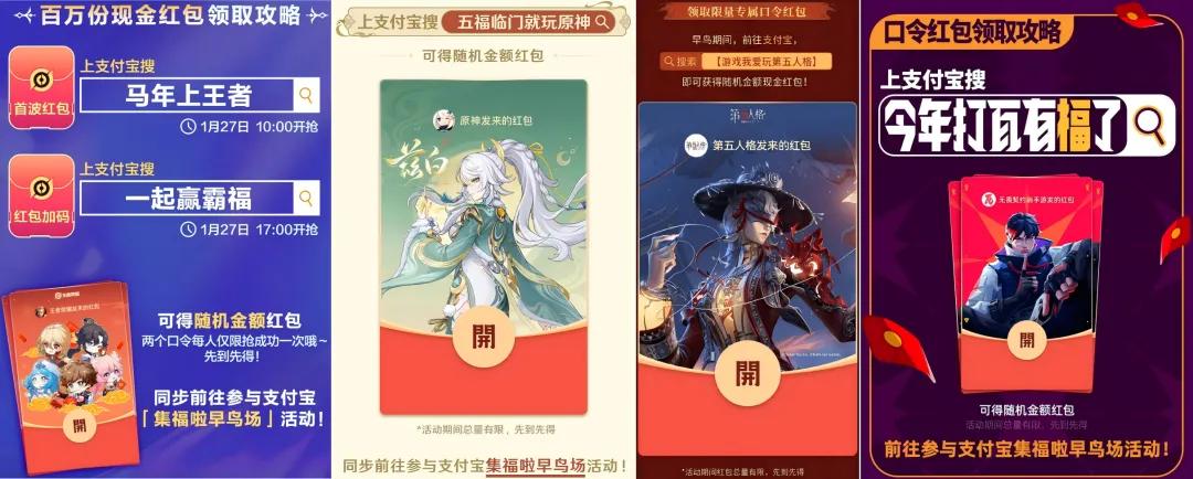 比如今年,所有参与集福的游戏IP,都在早鸟期准备了随机金额红包;