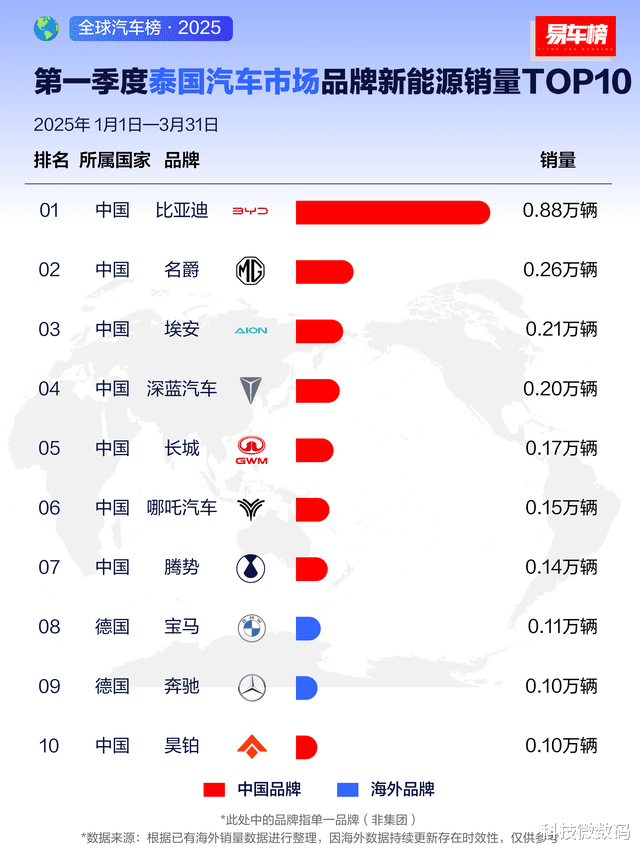 而在泰国,比亚迪以0.88万辆荣获2025年一季度新能源汽车销冠。在2025年泰国国际车展中,比亚迪和腾势品牌以超1万辆订单量超越丰田(0.98万辆),打破日系车企长期垄断的市场格局,这一成绩标志着中国品牌在东南亚主流市场的认可度显著提升。