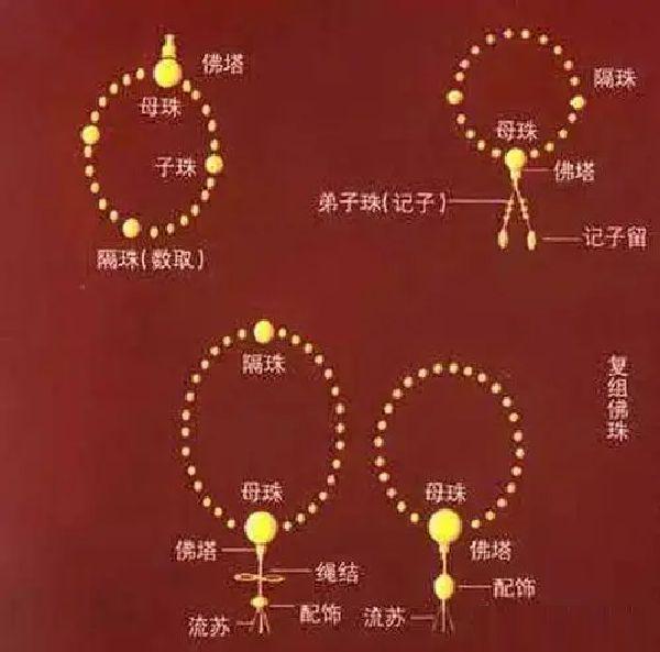 在一串佛珠上,珠子的颗数通常有:14颗、18颗、21颗、27颗、36颗、42颗、54颗、108颗、1080颗。