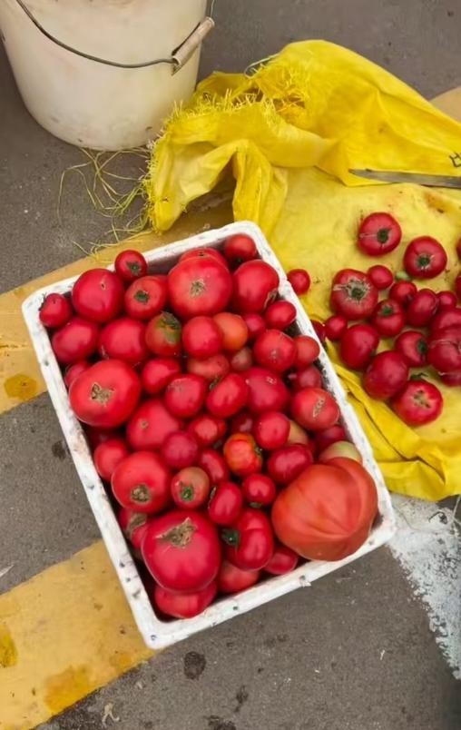 于是就骑着电动车社满街找老婆,谁曾想他中途却拐进菜市场买西红柿。