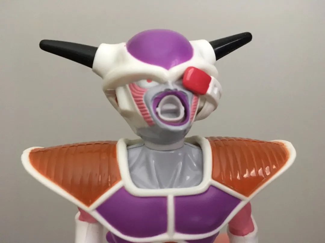 弗利萨第一形态,第一眼看上去,好像叼着一个奶嘴。表情有点呆傻,细节刻画几乎没有。和原著弗利萨相比,不能说一模一样,只能说一点都不像,宇宙帝王的威严荡然无存。