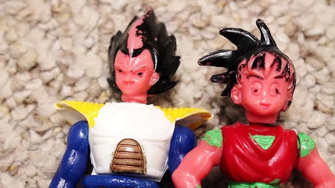 奇葩的悟空和贝吉塔,造型丑陋我忍了,五官惊奇也能忍,红色皮肤也能忍,最不能忍的是头发居然掉漆。这样一来,这两位看起来不伦不类了……