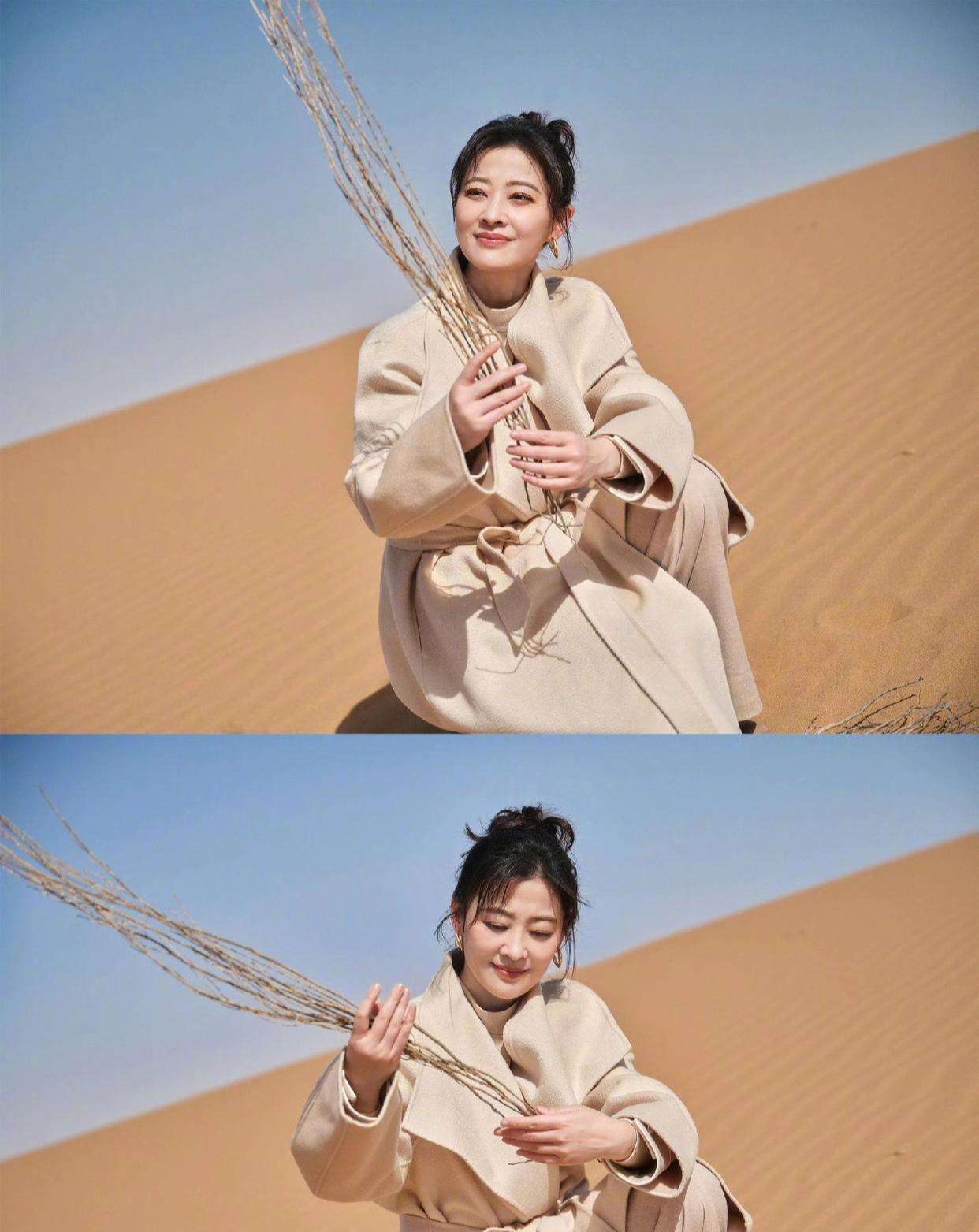 起初,不少人刷到,还以为是普通的明星摆拍,带着礼貌性的点赞。可当点开图片,瞬间就被震住了。别人拍植树照片,多半选择在公园或景区,背景绿意盎然,轻松养眼。而梅婷偏偏选择了沙漠——一望无际的黄沙之中,她手里紧握着一棵小树苗。没有繁茂的树木,没有艳丽的花海,只有漫天黄沙和那抹新绿,形成了强烈的视觉反差,却又别具象征意味。