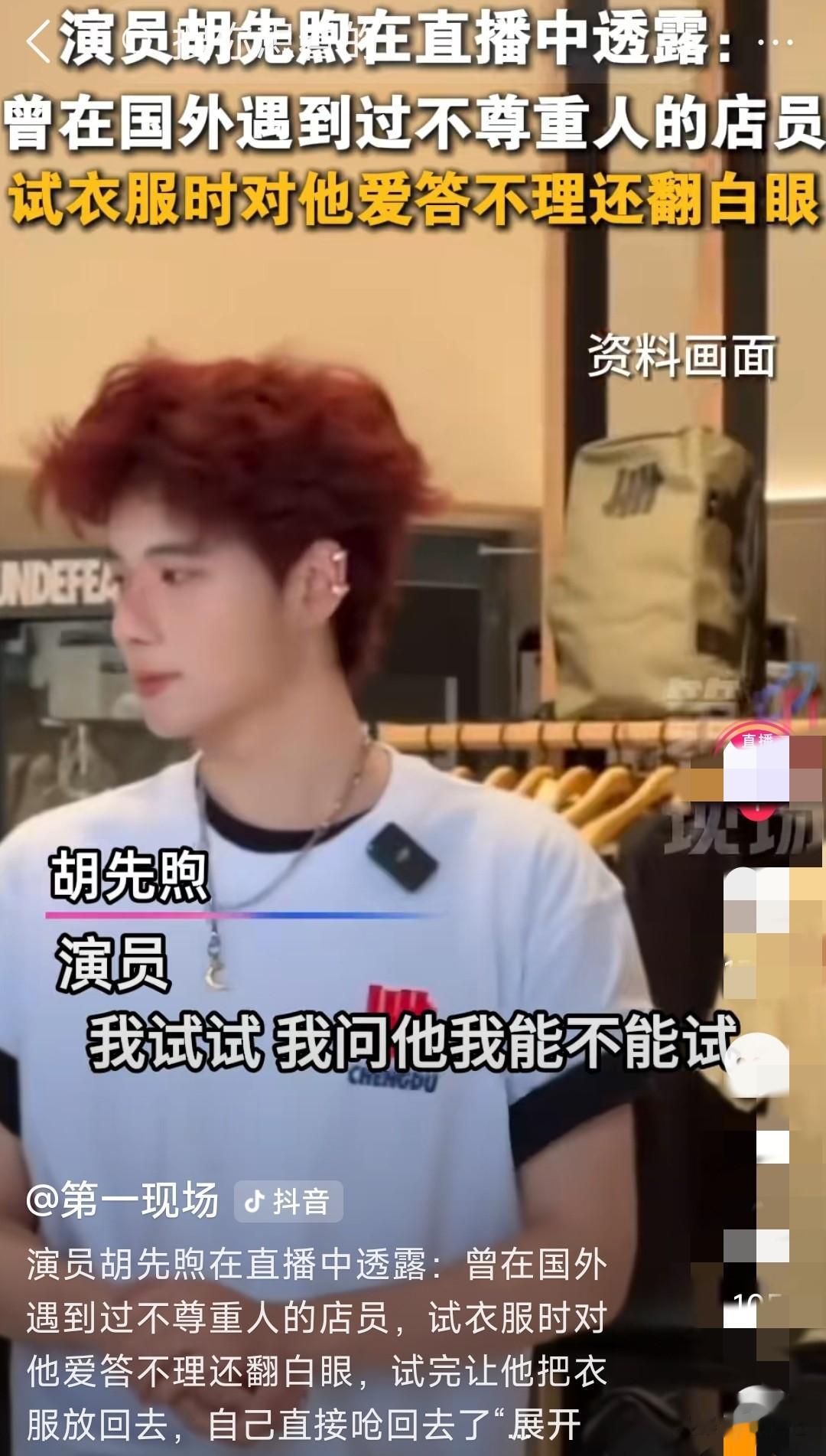 对于店员的无视很多人或许就会转头就走,去别家买了,但是被店员歧视了,胡先煦是少数敢现场硬刚的。