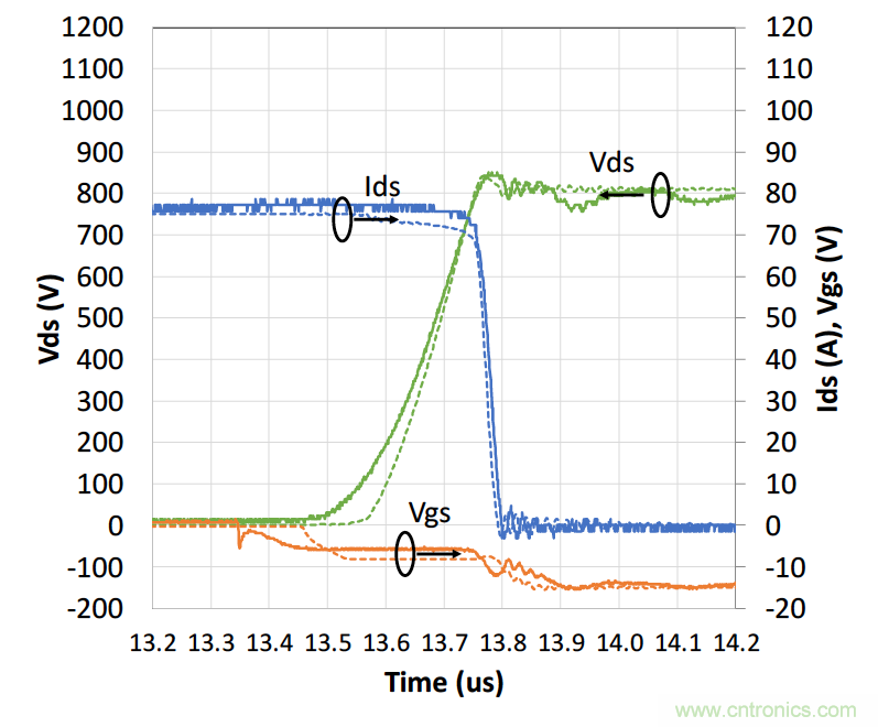 死区时间不足:桥式拓扑中上下管同时导通,形成直通,电流瞬间达到Idmax的数倍