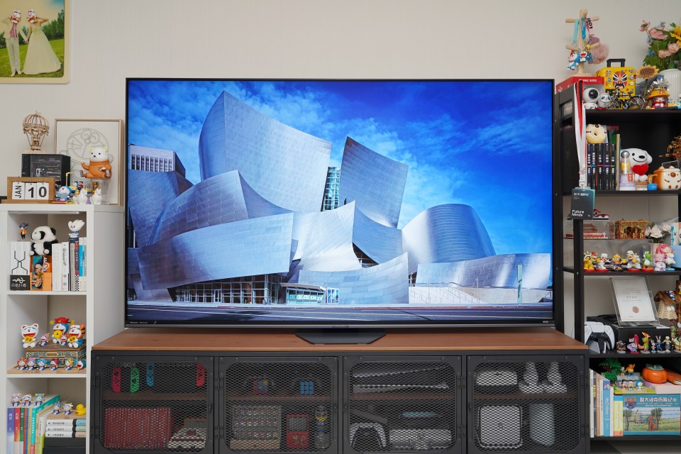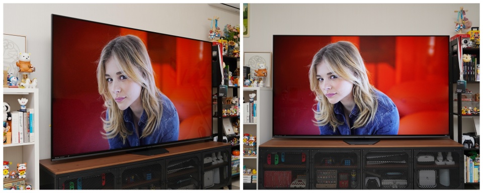 对于大客厅来说,甚至还可以把这台电视置于房间中间。无论前后都有不俗观感,妥妥可以成为占据客厅C位的颜值担当。