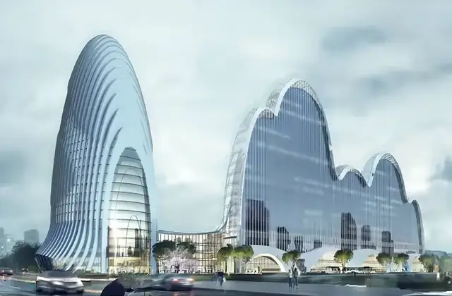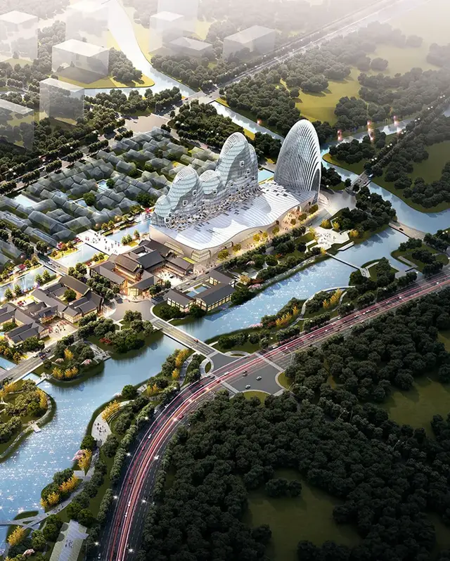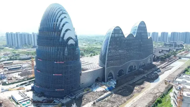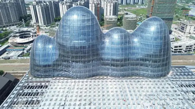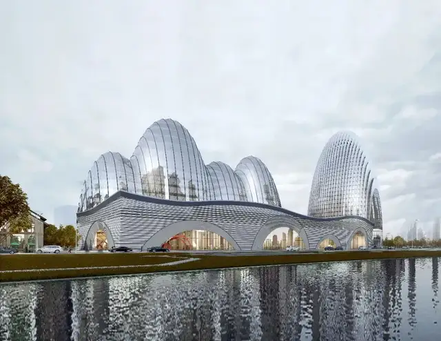 外立面尤为特别,覆盖着20000多块定制曲面玻璃。这些玻璃每块的形状皆不相同,在日照下折射出粼粼波光,仿佛将瓯江的涟漪凝固于建筑表面。为了实现这一灵动效果,建设过程中广泛运用数字化建模与精密切割工艺,将安装误差降至最低。