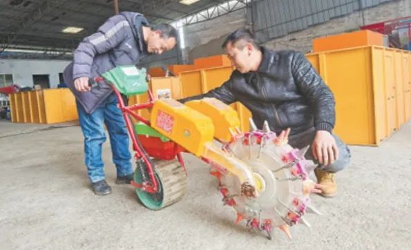 “今年备了50台电动式播种机、50台手推式播种机,不少人来询问性能和价格,应该会卖得好。”连续3年探索,杜苏林的信心越来越足。经过市场调研,杜苏林发现,国产农机性价比高,在市场上更受欢迎。合作社在售的农机,目前全部是国产。合作社还跟许多企业合作,共同开展样机试验:样机交给种植户免费试用,杜苏林做好追踪记录并向厂家反馈,促进产品完善。