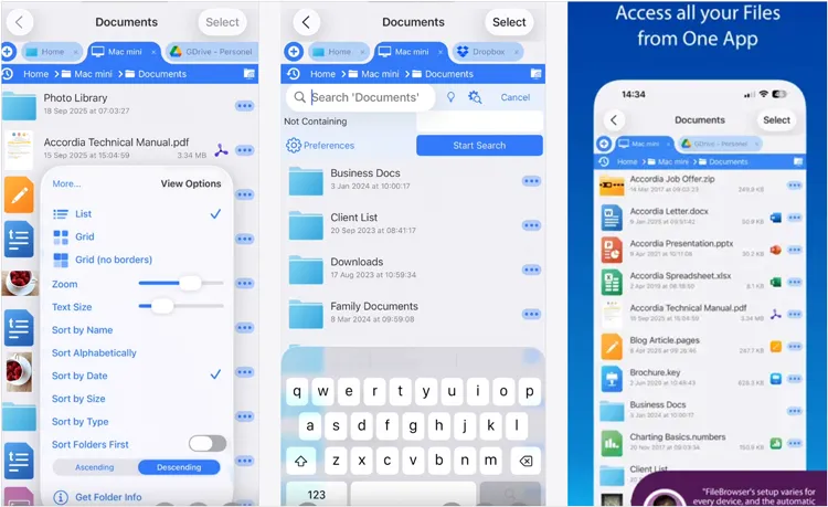 集中访问:如果没有文件管理器,在应用程序 A 中访问存储在应用程序 B 中的文档会非常繁琐。文件管理器提供了一个集中式的位置,用于查看、整理和移动不同应用程序、云服务和本地设备上的文件。 系统组织:文件管理器允许用户创建逻辑文件夹层次结构、重命名文件、标记项目,并快速搜索大量数据,防止数字混乱。 外部和云端集成:许多文件存储在云服务(例如 OneDrive 或 Dropbox)或网络驱动器(例如 SMB 服务器)上。一款优秀的文件管理器可以充当网关,将您的 iOS 设备与这些外部存储位置无缝连接起来。 高级操作:对于高级用户而言,文件压缩/解压缩(ZIP/RAR)、安全锁定、媒体播放和文档注释等功能至关重要,而所有这些功能都由综合文件管理应用程序提供。 传输效率:文件管理器简化了设备和计算机之间传输文件的过程,通常可以取代复杂的同步软件。第二部分:适用于 iPhone 和 iPad 的最佳文件管理器无论您喜欢内置解决方案还是功能强大的第三方工具,总有一款 iOS 文件管理器能够满足您的需求。