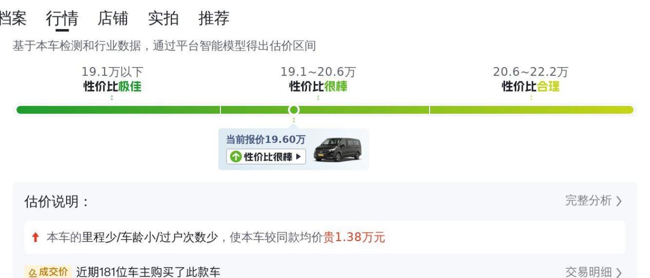 最后,我们用数据说话。根据懂车帝平台的数据,2018款奔驰威霆2.0T精英版7座国VI的新车指导价为28.98万元,目前二手车市场平均价格在18万到22万之间。这辆车的报价19.6万,属于合理范围。同时,该车型的百公里油耗为8.8L,相对经济实用。