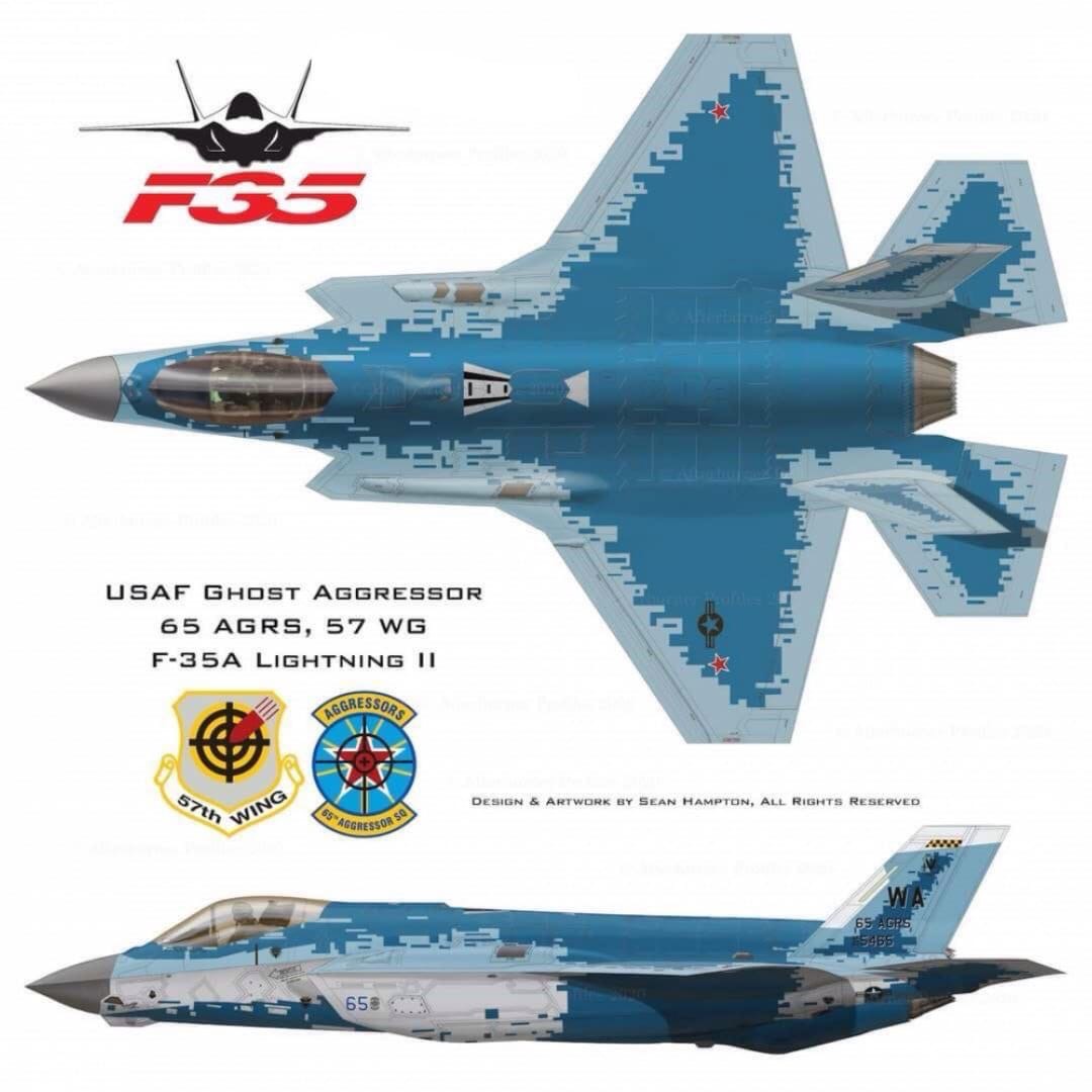 65入侵者中队的F-35A战斗机负责扮演苏-57、歼-20、歼-35等中俄战机。同为假想敌中队的第64入侵者中队还在使用F-16C/D。第18入侵者中队还在使用F-15C/D,这些战斗机负责模拟SU-27系列战机,以及米格-29等战机,战机质量差距非常明显。