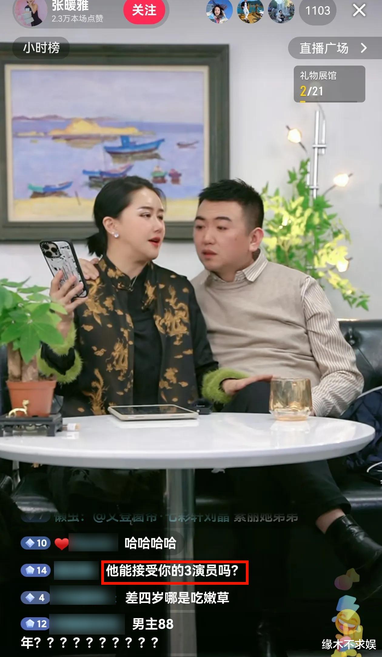 直播当天张暖雅穿着黑色新中式,打扮沉稳大气了很多。她的山东丈夫则身穿米色针织倚靠在张暖雅旁边。夫妻俩一边直播一边看弹幕里的问题。