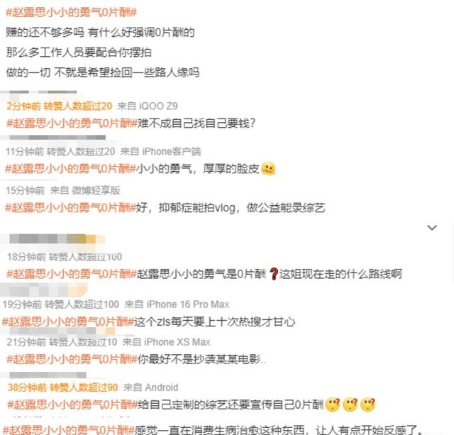 “给自己定制的综艺还要宣传自己0片酬”、“赚的还不够多吗,有什么好强调0片酬的”、“做的这一切,不就是希望能捡回一些路人缘吗”?