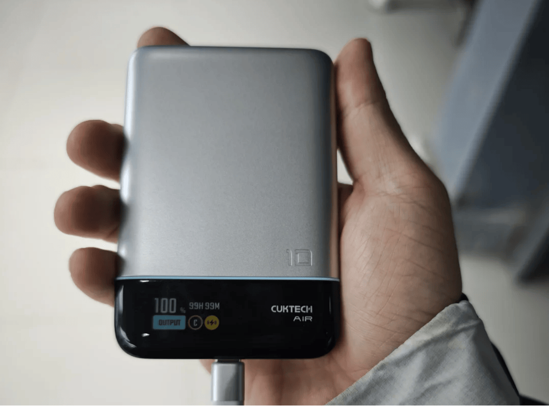 酷态科 10 号 Air 的磁吸体验是比较稳的,实际贴合时对位容错高,日常临时补电不用反复调整角度。15W 磁吸加 55W 有线的组合,在同类磁吸充电宝里效率偏高,尤其插线充手机,回血速度明显。屏幕是它的加分项,电量、功率、状态一眼可见,使用中不需要靠猜。自带可拆 Type-C 线在短途出门时很省事。需要注意的是机身重量和厚度都偏大,放在口袋里存在感明显,走路边充时磁吸稳定性一般。硅碳负极电池安全性不错,但实际可用电量不算多,长时间外出需要有心理预期。