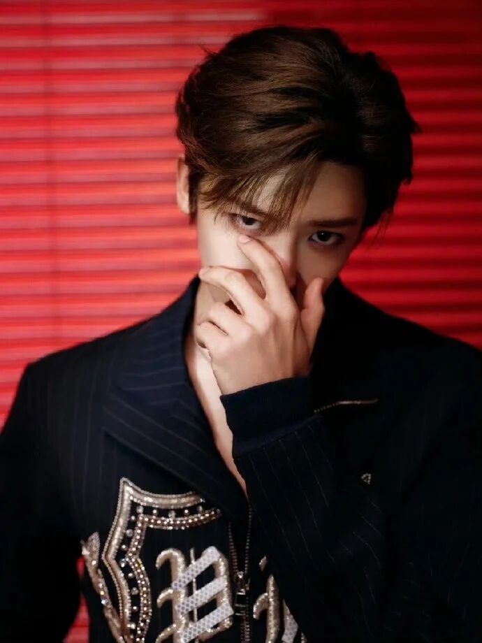 这造型最戳的 “不绷”—— 他没刻意凹 “舞台酷姿”:指尖抵着下颌是柔的,但肩线的裁线没垮;拿麦站在粉背景前是松的,但廓形的锐没软,是 “少年的爽裹着 Balmain 的锐”,不是 “硬撑舞台的端”。你看舞台粉背景没抢他的戏,反而衬得裁线的利落更锐,少年的清爽更爽,全是 “裁线的锐没压少年的松,少年的爽没盖高奢的精”。