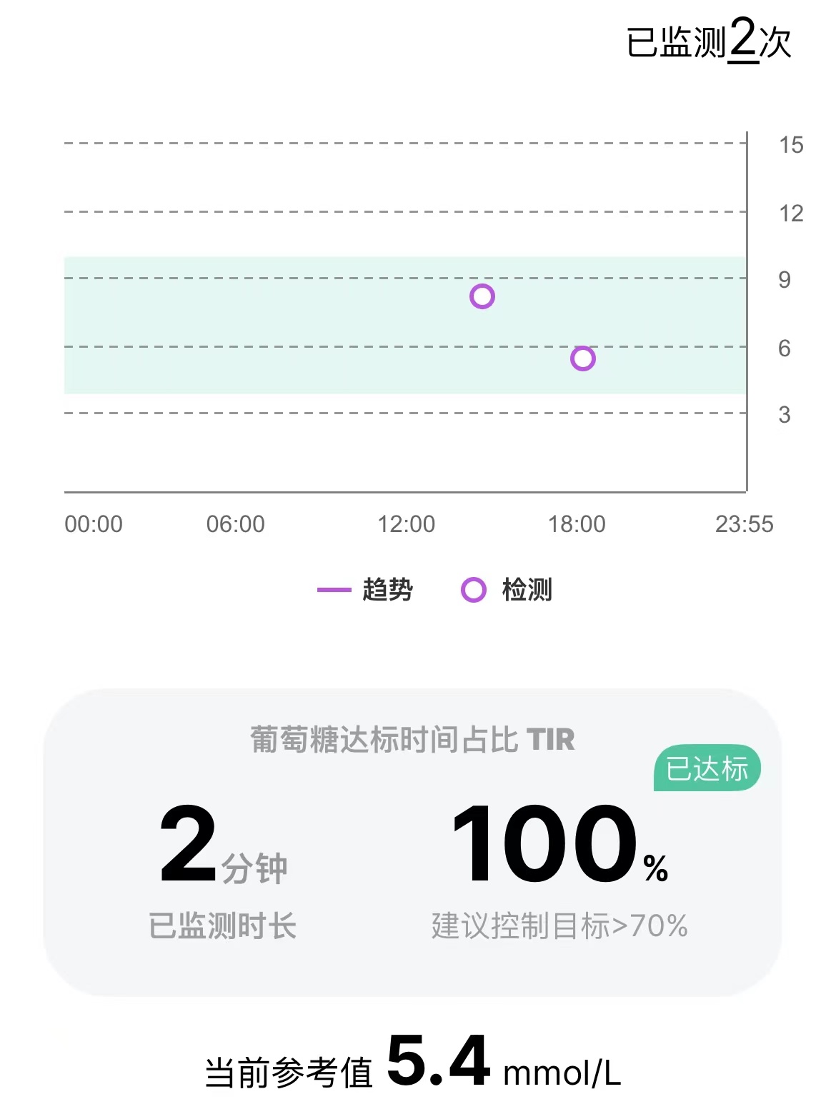 当然,数据也是可以同步的,患者不仅可以在手机上查看更详细的历史数据,还能利用 配套的APP 的分析功能!舒糖手表可实时监测血糖并生成趋势图,患者能随时查看血糖变化,合理安排饮食运动。如发现餐后血糖升高,可调整饮食和运动。